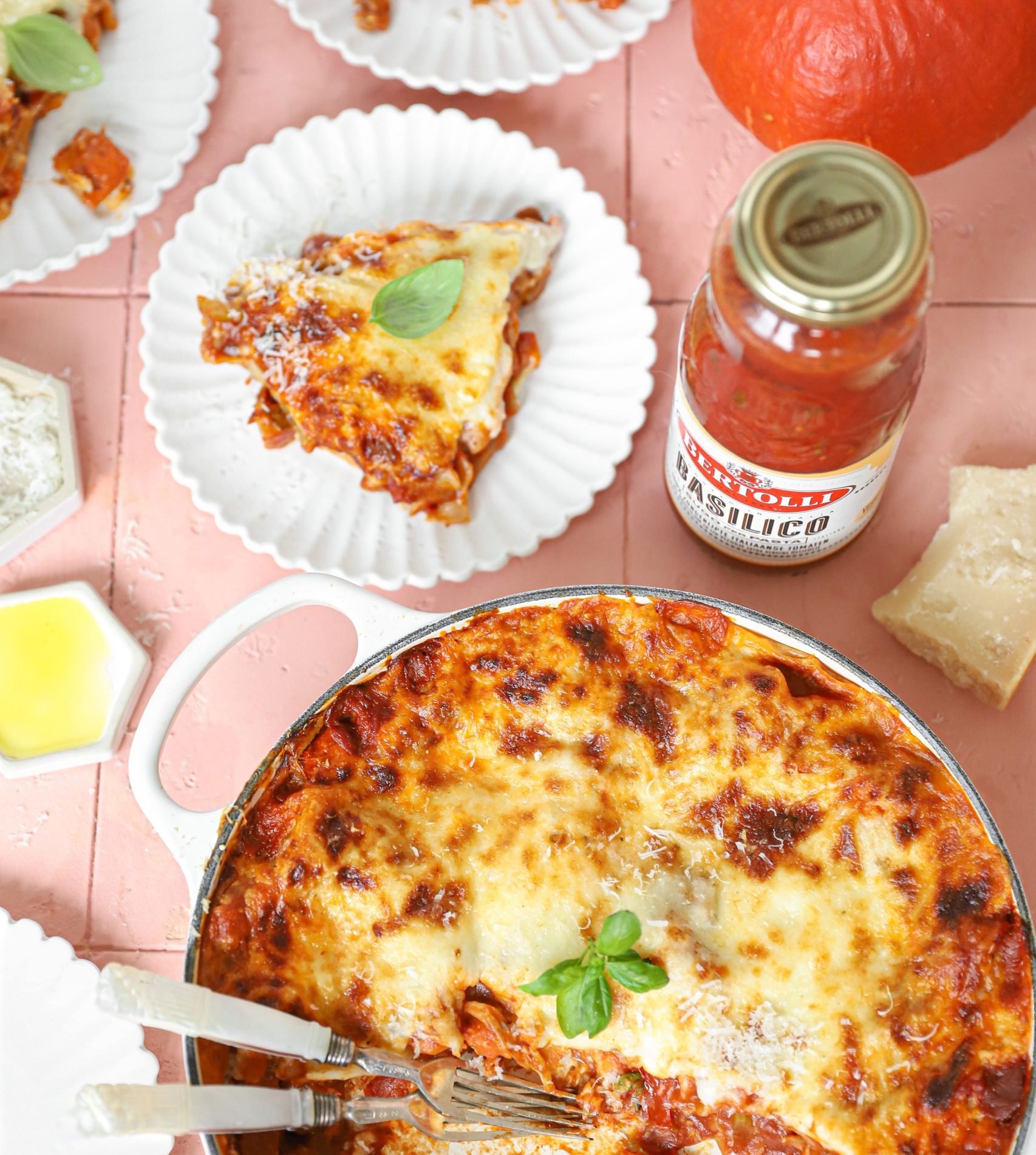 Jadis van The Lemon Kitchen heeft een heerlijke twist aan een klassieker gegeven, namelijk een pompoen lasagna. Gemaakt met de Bertolli Basilico pastasaus.